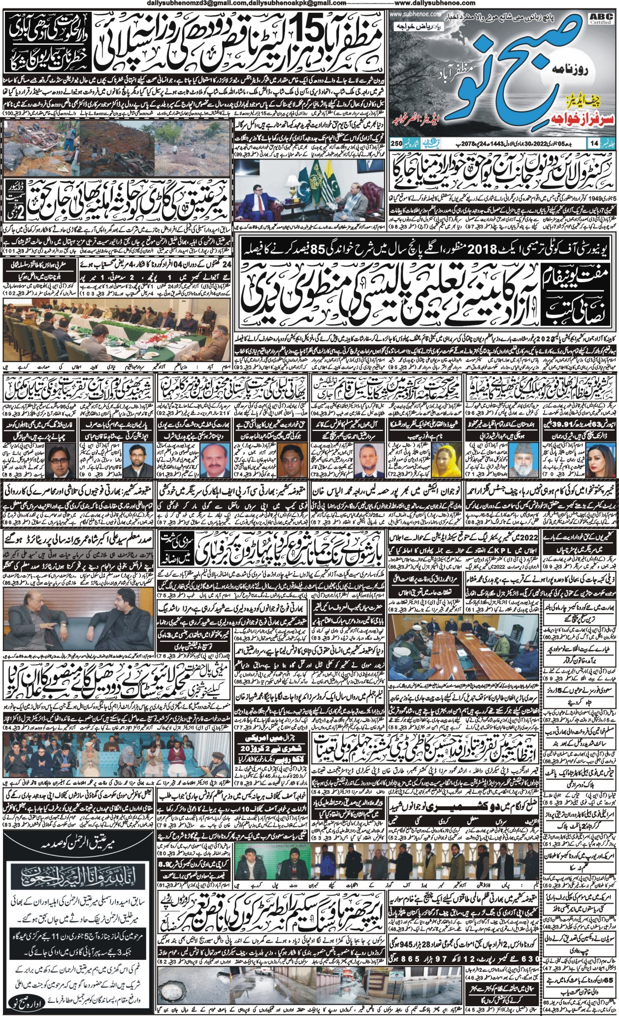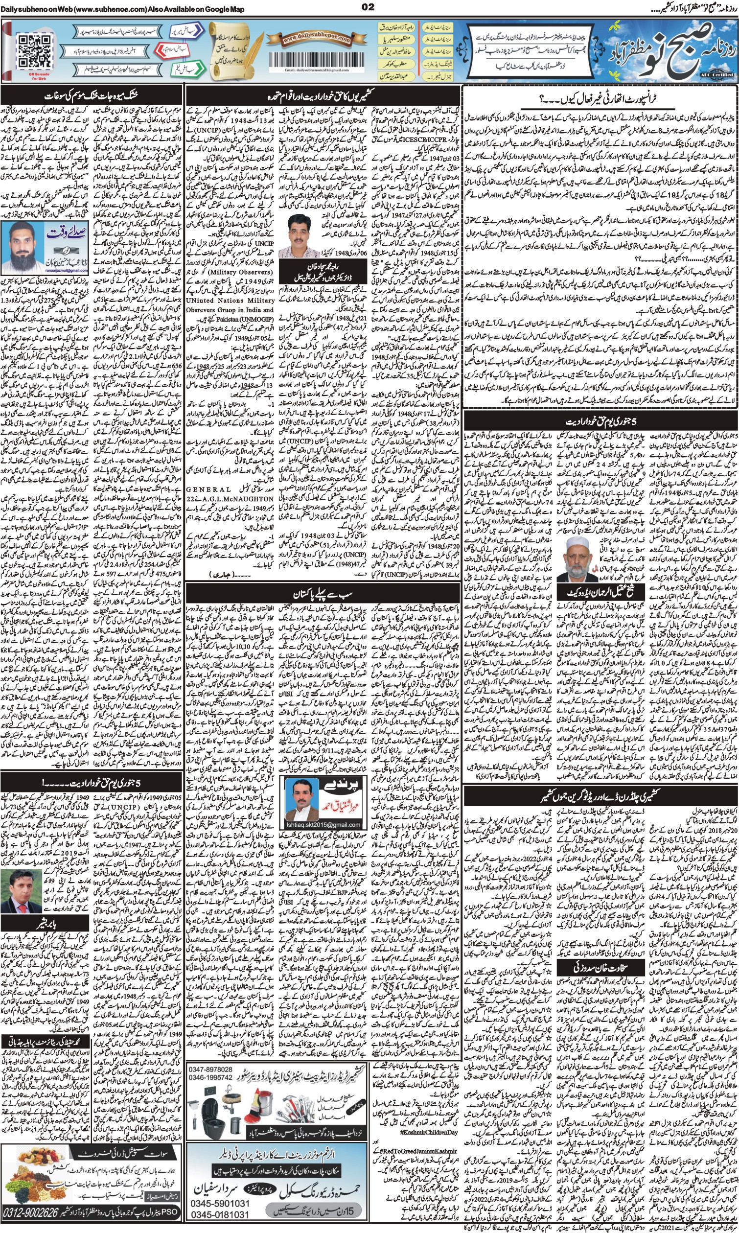 05-01-2022 صبح نو مظفرآباد آزاد کشمیر January 5, 2022 MOON CREATIONS PAGE 1 PAGE 2 PAGE 3 PAGE 4 Categories: JANUARY 2022